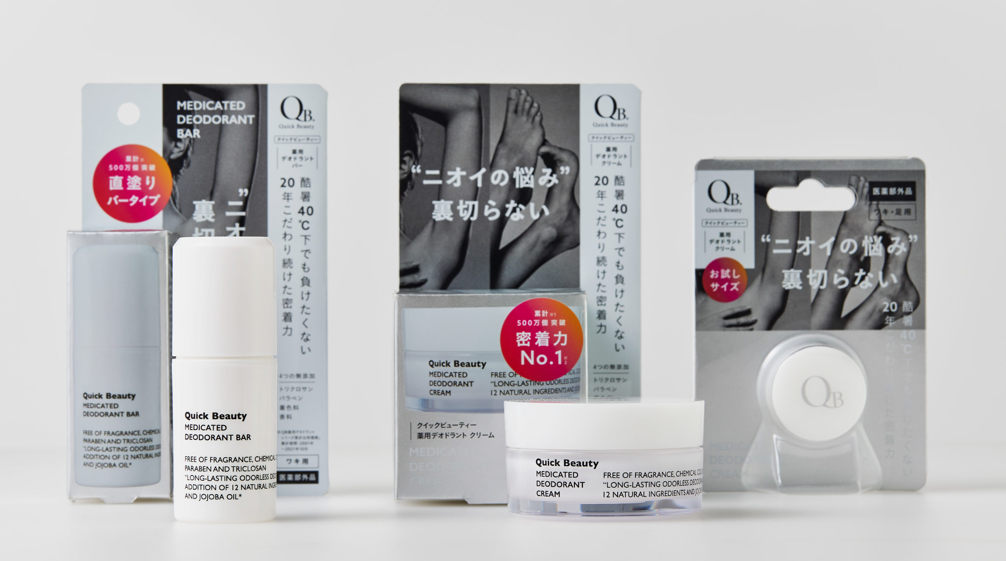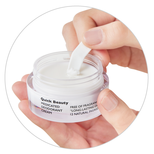 前回塗布したクリームの残留や雑菌などがお肌に残っていると、新たに塗るQB薬用デオドラント製品の効果がしっかり発揮できないことがあるため、都度しっかり洗い落としていただくことが大切です。